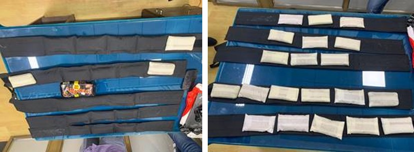 यावेळी या प्रवाशांच्या हातातील बॅगेज तसेच चेक-इन बॅगेजची तपासणी करण्यात आली. त्यावेळी 5 काळ्या पट्ट्यांमध्ये लपवलेल्या 20 पांढऱ्या रंगाच्या पॅकेटमध्ये पेस्ट स्वरूपात लपविलेले 43.5 किलो सोने सापडले.