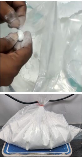 थर्मोकोल बॉल्सचे बारकाईने निरीक्षण केल्यावर असे दिसून आले की काही गोळे बाकीच्या गोळ्यांपेक्षा थोडे जड (फक्त 1-2 ग्रॅम) होते. त्यानुसार, वजनाप्रमाणे जड थर्माकोल बॉल वेगळे करण्यात आले , जे एकूण थर्माकोल बॉल्सच्या सुमारे 10% होते. हे जड थर्माकोलचे 972 गोळे कापले असता , त्यात पारदर्शक आणि अगदी पातळ पॉलिथिनने झाकलेले पांढऱ्या भुकटीचे छोटे गोळे लपवून ठेवलेले आढळले.