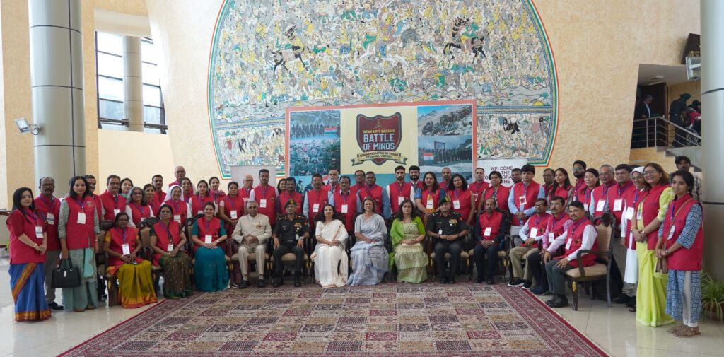 ज्ञानवर्धन आणि युवावर्गाच्या सशक्तीकरणाच्या दिशेने एक महत्त्वाचे पाऊल उचलत, भारतीय लष्कराने दिल्ली लष्करी छावणी क्षेत्रातील माणेकशॉ केंद्रामध्ये ‘बॅटल ऑफ माइंड्स’- इंडियन आर्मी क्विझ 2023, अर्थात ‘मनाचे द्वंद्व’- भारतीय सेना प्रश्नमंजुषा स्पर्धा 2023 चे, आकर्षक बोधचिन्हासह नुकतेच अनावरण केले.