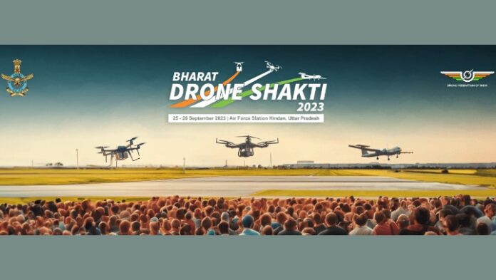 मानवरहित यंत्रणेचा वापर करण्याच्या आपल्या समृद्ध अनुभवाचा लाभ घेण्यासाठी, भारतीय हवाई दल, ड्रोन फेडरेशन ऑफ इंडियासोबत ‘भारत ड्रोन शक्ती 2023’चे सह-यजमानपद भूषवित आहे. हा उपक्रम 25 आणि 26 सप्टेंबर 2023 रोजी हिंडन (गाझियाबाद) येथील भारतीय हवाईदलाच्या तळावर आयोजित केला जाईल, जिथे भारतीय ड्रोन उद्योगाच्या वतीने हवाई प्रात्यक्षिके होतील.