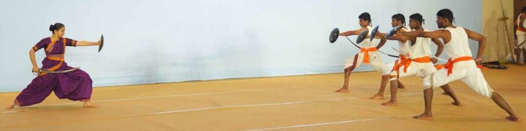 मणिपुरी थांग-ता युद्धकलेतील तलवार (थांग), भाला (ता), ढाल आणि युद्धतंत्र यांचे शास्त्रशुद्ध, शौर्यपूर्ण सादरीकरण महोत्सवाचे प्रमुख आकर्षण ठरले. कोल्हापूरस्थित ‘सव्यासची गुरुकुलम’ संस्थेच्या वतीने सादर करण्यात आलेल्या शौर्यप्रदर्शनात शिवकालीन युद्धतंत्र आणि मराठी शस्त्रपरंपरेचा प्रभावी समन्वय साधण्यात आला. यामध्ये शस्त्रांचा प्रत्यक्ष वापर, संकटसमयी आत्मरक्षण, महिलांवरील छेडछाडीच्या प्रसंगी बचाव, तसेच अनेकांकडून होणाऱ्या आक्रमणाला धैर्याने प्रतिकार कसा करावा, याची सजीव प्रात्यक्षिके सादर करण्यात आली. यासोबतच ऋषी-मुनींनी सांगितलेल्या सूर्यनमस्कार, चंद्रनमस्कार, भूमीनमस्कार तसेच विविध पारंपरिक व्यायामप्रकारांचे सादरीकरण करण्यात आले. या व्यायामपद्धती शरीर, मन आणि आत्मा यांचा समतोल साधणाऱ्या असून भारतीय संस्कृतीतील आरोग्य व शौर्य यांचा अविभाज्य संबंध अधोरेखित करतात.