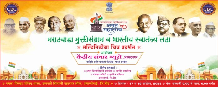 मराठवाडा मुक्तिसंग्राम अमृत महोत्सव वर्षानिमित्त, मराठवाडा मुक्तिसंग्राम व भारतीय स्वातंत्र्य लढ्यातील दूर्मिळ अशा छायाचित्रांचे प्रदर्शन, जिल्हा परिषद हायस्कूल, छत्रपती शिवाजी महाराज चौक, अंबाजोगाई येथे  आज, १७ व उद्या, १८ सप्टेंबर २०२३ दरम्यान आयोजित करण्यात आले असून हे प्रदर्शन सकाळी ९ ते सायंकाळी ६ पर्यंत सर्वासाठी मोफत खुले राहणार आहे.