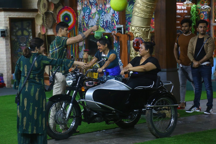 आज घरामध्ये होणार आहे “हल्ला बोल”.. हा टास्क नक्की काय असणार आहे? या टास्कमधून सदस्यांना काय मिळणार आहे? हे आजच्या भागामध्ये कळेलच. पण, नुकत्याच समोर आलेल्या प्रोमोमधून असे दिसते की, एका टीममधील दोन सदस्य मोटरबाईकवर बसणार आहेत आणि दुसर्या टीममधील सदस्य त्यांना उठवण्याचा प्रयत्न करणार आहे. प्रोमोमध्ये मोटर बाईकवर बसलेली पहिली जोडी आहे सोनाली आणि सुरेखा कुडची यांची तर दुसरी जोडी आहे विशाल आणि विकासची.