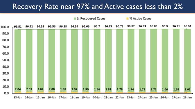 With a consistent rise in cumulative recoveries, India’s Recovery Rate has reached nearly 97%. India’s recovery rate is one of the highest globally. 1,03,73,606 people have recovered. 14,301 patients have recovered and discharged in the last 24 hours.