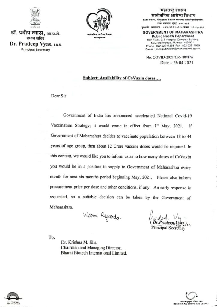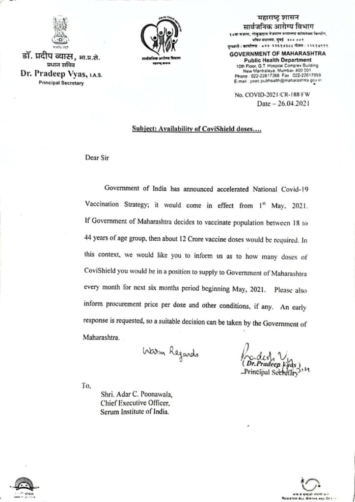 समजा तसा निर्णय घेतला तरी त्यासाठी आपली तयारी कितपत आहे? राज्याचे आरोग्य सचिव डॉ. प्रदीप व्यास यांनी कालच (२६ एप्रिलला) कोविशिल्ड आणि कोवॅक्सिन, या लसींचे उत्पादन करणाऱ्या कंपनींकडून किती दरात लस मिळेल याची विचारणा केली आहे. या कंपन्या दर कळवणार, त्यांच्याशी वाटाघाटी होणार, नंतर दर निश्चित होणार, त्यात त्यांच्याकडे इतर राज्यांचीही मागणी आहे. त्यामुळे त्या किती लस, कोणत्या कालावधीत उपलब्ध करणार हे सांगणार. मग त्यांच्याबरोबर करार होणार आणि पुढे त्याची अंमलबजावणी होणार. १ मेपर्यंत हे शक्य होईल असे वाटत नाही. त्यामुळे एक तारखेपासून १८ वर्षांवरील व्यक्तींचे लसीकरण होण्याची शक्यता फार कमी आहे. त्यातूनही हे लसीकरण झालेच तर ते केंद्र सरकारकडून ४५ वर्षांवरील व्यक्तींसाठी आलेल्या लसींच्याच कोट्यातून अनधिकृतरित्या होईल.