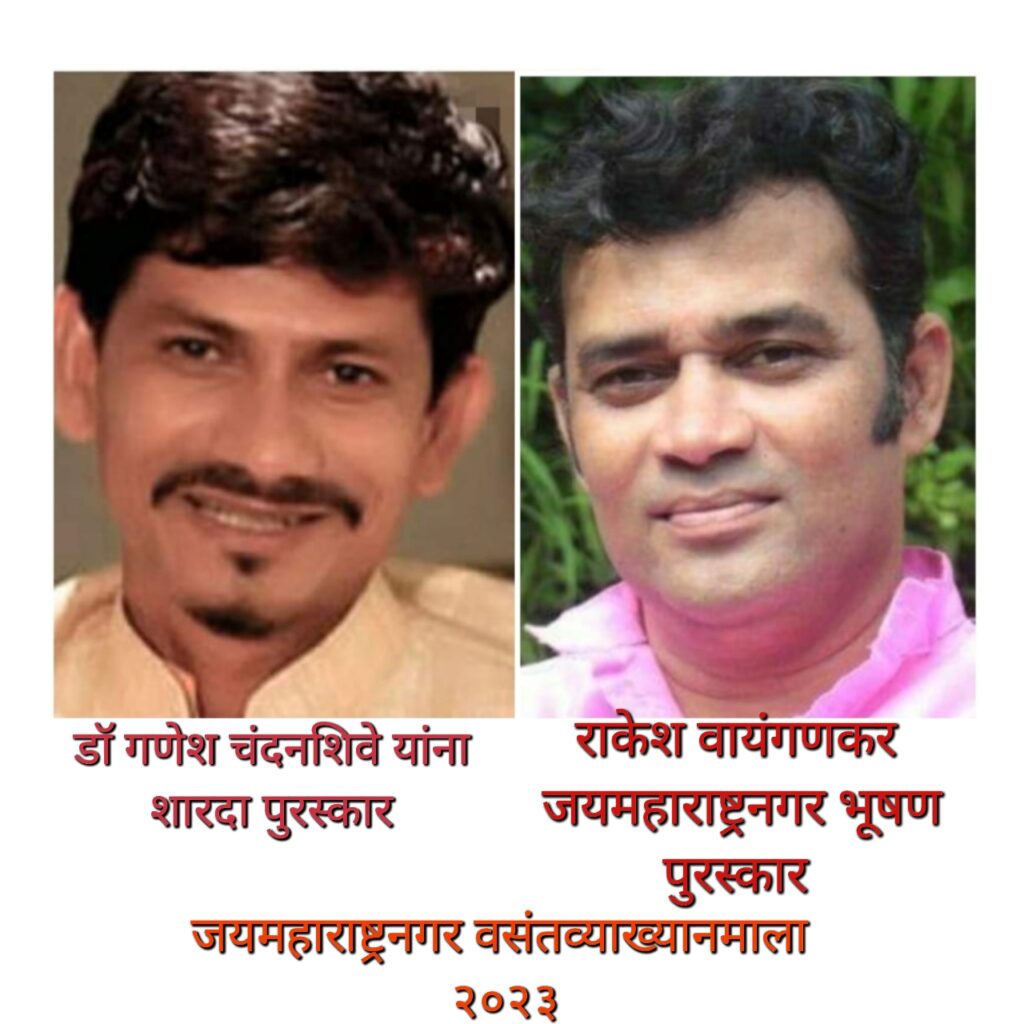 नेहमीप्रमाणे यंदाही या वसंत व्याख्यानमालेत ‘शारदा पुरस्कार’ आणि ‘जय महाराष्ट्र नगर भूषण पुरस्कार’ देण्यात येणार असून लोककलेचे गाढे अभ्यासक डॉ. गणेश चंदनशिवे यांना ‘शारदा पुरस्कार’ तर सांस्कृतिक, शैक्षणिक आणि क्रीडा क्षेत्रात निरपेक्षपणे कार्य करणारे राकेश वायंगणकर याना ‘जय महाराष्ट्र नगर भूषण पुरस्कार’ प्रदान करण्यात येणार आहे. नाटककार विद्याधर गोखले, महाराष्ट्र शाहीर साबळे, पंडित कुमार गंधर्व, नाटककार वसंत कानेटकर, पटकथाकार मधुसूदन कालेलकर यांच्या जन्मशताब्दीनिमित्त आदरांजली अर्पण करण्यासाठी ‘स्मरण रंजन’ या विशेष सांगितिक कार्यक्रमाने जय महाराष्ट्र नगर वसंत व्याख्यानमालेचे पहिले पुष्प बुधवार, २६ एप्रिल २०२३ रोजी गुंफण्यात येणार आहे. सुप्रसिद्ध गायक श्रीरंग भावे, निवेदन श्रेयसी मंत्रवादी, संगीत संयोजन प्रशांत ललित, गायिका केतकी भावे जोशी, ध्वनी संयोजन रवींद्र माळवदे हे या कार्यक्रमाचे सादरकर्ते आहेत.