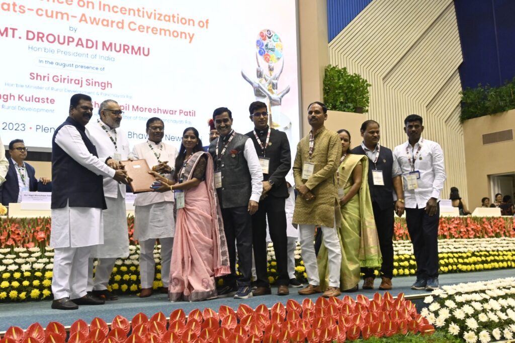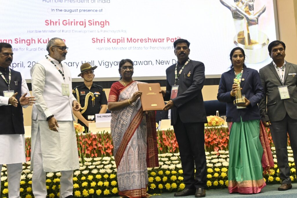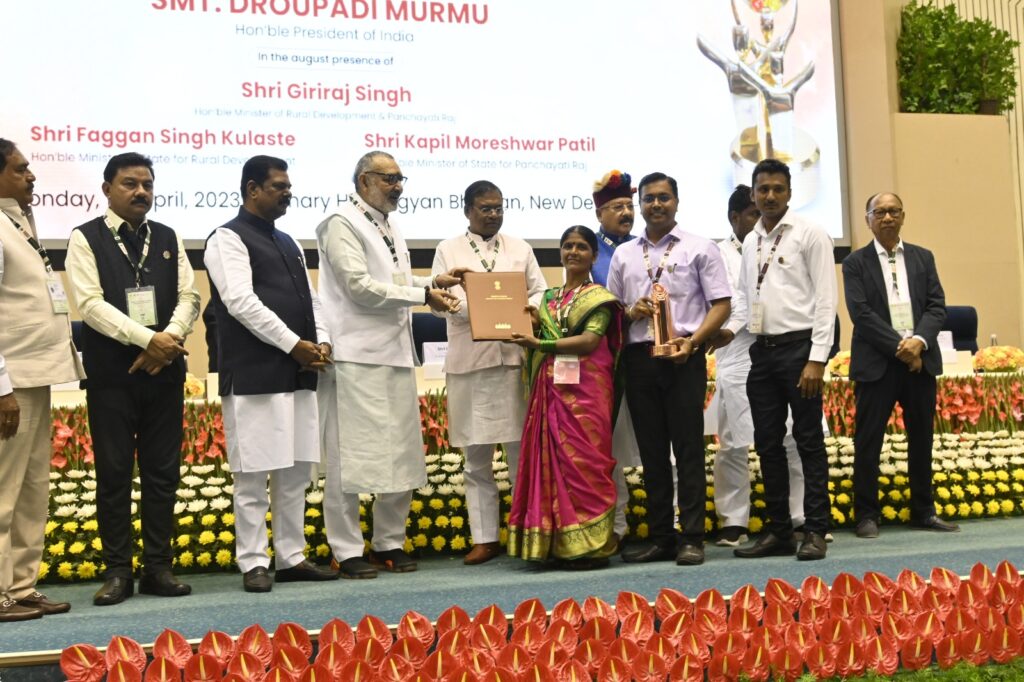 दिल्लीतल्या विज्ञान भवनात केंद्रीय ग्रामीण विकास व पंचायती राज विभागाच्यावतीने 17 ते 21 एप्रिलपर्यंत ‘राष्ट्रीय पंचायत पुरस्कार सप्ताह’ साजरा करण्यात येत आहे. या अंतर्गत हा राष्ट्रीय पंचायत पुरस्कार समारंभ आयोजित करण्यात आला. या कार्यक्रमास राष्ट्रपती द्रौपदी मुर्मू, केंद्रीय ग्रामीण विकास व पंचायत राज मंत्री गिरिराज सिंह, केंद्रीय ग्रामीण विकास राज्यमंत्री फग्गन सिंह कुलस्ते, केंद्रीय पंचायती राज राज्यमंत्री कपिल पाटील, विभागाचे सचिव सुनील कुमार व्यासपीठावर उपस्थित होते. यावेळी काही प्रमुख पुरस्कार राष्ट्रपतींच्या हस्ते तर, काही पुरस्कार केंद्रीय मंत्री सिंह यांच्या हस्ते प्रदान करण्यात आले.