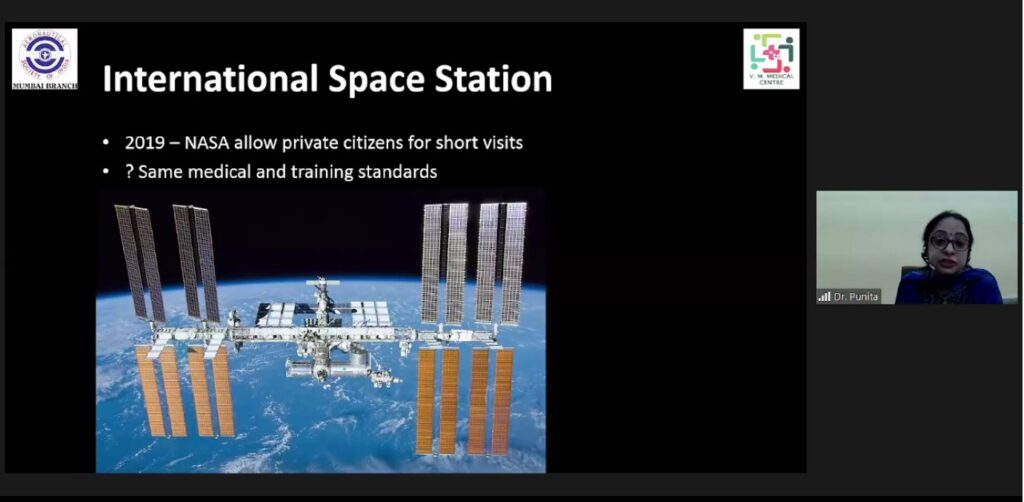 अवकाश पर्यटनातील धोका, जाणीव जागृती, चिंतेच्या बाबी आणि माहितीपश्चात वैद्यकीय मंजुरी या अत्यावश्यक भागांसह यात गुंतलेल्या वैज्ञानिक घटकांची डॉ. पुनिता यांनी चर्चा केली. या सफरीवर जाऊन आल्यानंतर उद्भवू शकणाऱ्या वैद्यकीय समस्या तसेच मानवी शरीर आणि मेंदू यांच्यावर अवकाश प्रवासाचा होणारा परिणाम याबद्दलही डॉ. पुनिता यांनी तपशीलवार माहिती दिली.