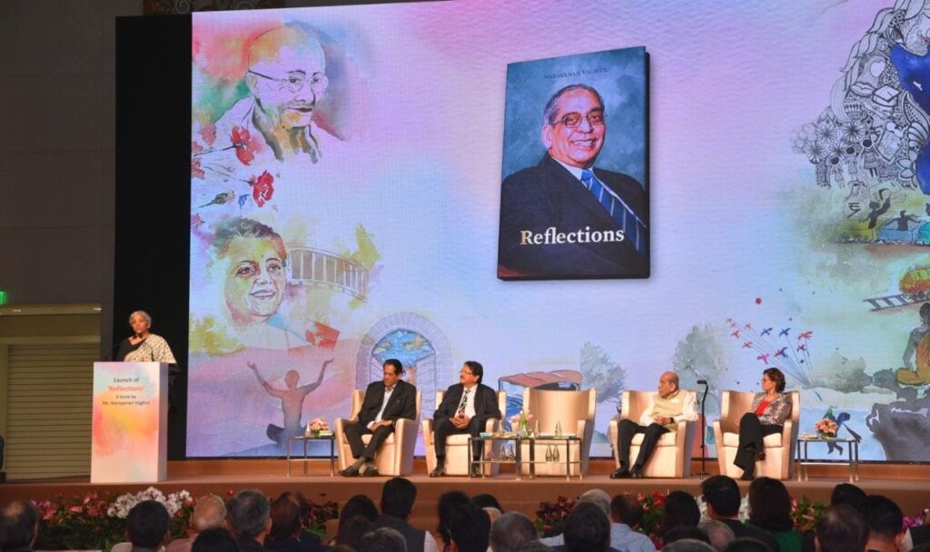 केंद्रीय वित्त आणि कॉर्पोरेट व्यवहार मंत्री निर्मला सीतारामन यांनी काल मुंबईत, प्रसिद्ध बँकर नारायणन वाघुल यांनी लिहिलेल्या ‘रिफ्लेक्शन्स’ या पुस्तकाचे प्रकाशन केले. भारताच्या वित्तीय परिदृश्यातील अनेक दशकांच्या वाघुल यांच्या अनुभवांची स्पष्ट आणि तपशीलवार नोंद या पुस्तकात आहे. या प्रकाशन सोहळ्याला पायाभूत सुविधा आणि विकासासाठी वित्तपुरवठा करणाऱ्या राष्ट्रीय बँकेचे (एनएबीएफआयडी) अध्यक्ष के. व्ही. कामथ, पिरामल समुहाचे अध्यक्ष अजय पिरामल, जेपी मॉर्गनच्या दक्षिण आणि दक्षिण पूर्व आशियाच्या माजी अध्यक्ष कल्पना मोरपारिया यांच्यासह प्रख्यात बँकर्स आणि आघाडीच्या वित्तीय संस्थांचे सदस्य याप्रसंगी उपस्थित होते.
