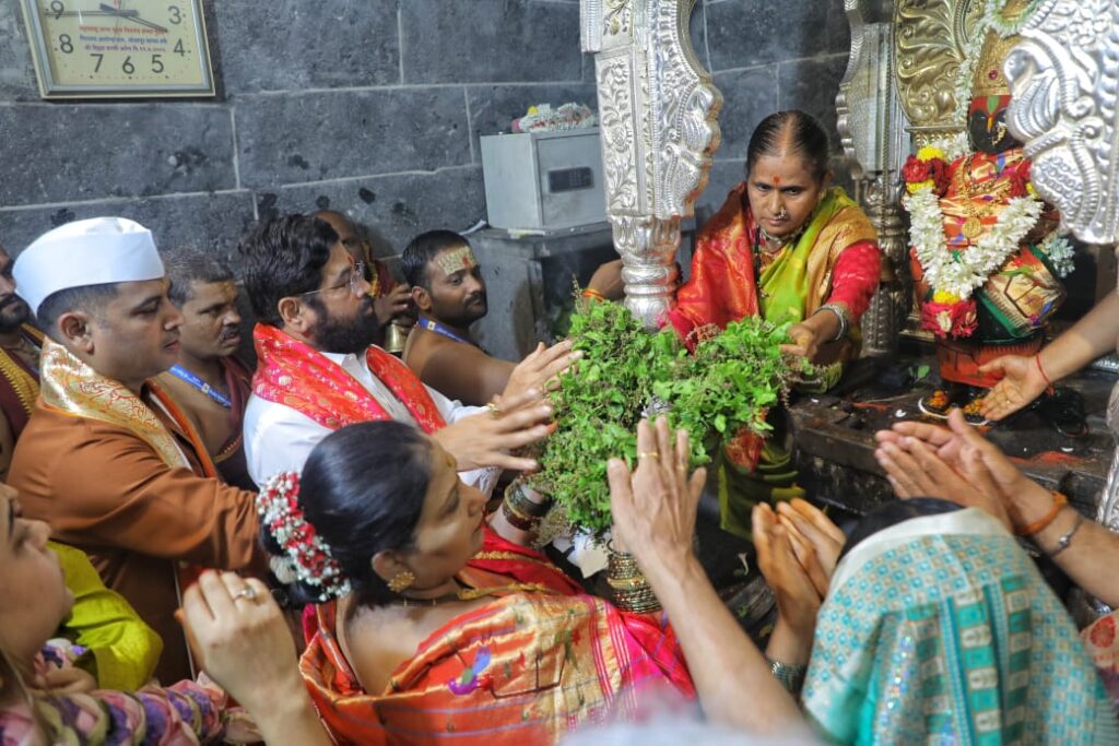 यावेळी मुख्यमंत्र्यांचे वडील संभाजी शिंदे, पत्नी लता शिंदे, मुलगा खासदार डॉ. श्रीकांत शिंदे, सून वृषाली शिंदे, नातू रुद्रांश आणि मंत्री गिरीश महाजन, तानाजी सावंत, चंद्रकांत पाटील तसेच दीपक केसरकर आदी आवर्जून उपस्थित होते.