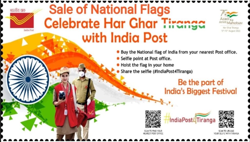 नागरिक त्यांच्या घरावर तसेच कार्यालयांवर फडकवलेल्या राष्ट्रध्वजासह सेल्फी फोटो काढून #IndiaPost4Tiranga, #HarGharTiranga, #HarDilTiranga या हॅशटॅगसह समाजमाध्यमांवर अपलोड करू शकतील.