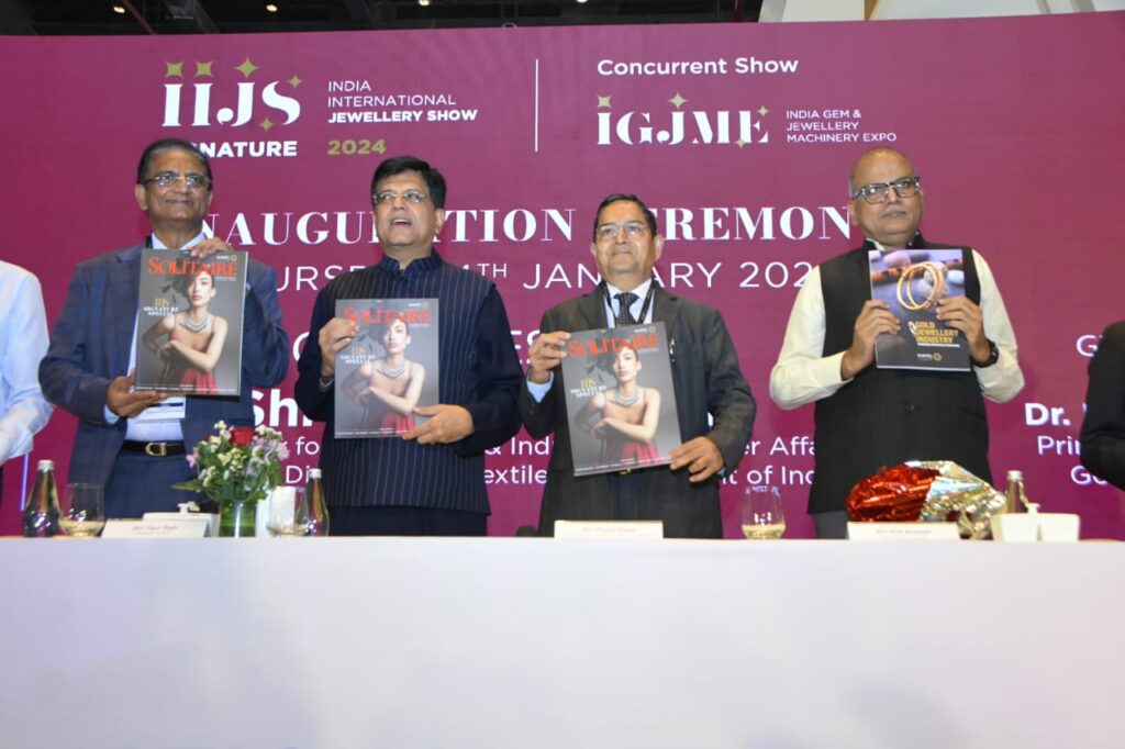 आयआयजेएस सिग्नेचर 2024च्या उद्घाटना दरम्यान, सॉलिटेयर इंटरनॅशनलच्या आयआयजेएस सिग्नेचर विशेष आवृत्तीचे केंद्रीय वाणिज्यमंत्री पीयूष गोयल यांनी इतर मान्यवरांच्या उपस्थितीत प्रकाशन केले. या कार्यक्रमाला महाराष्ट्राचे प्रधान उद्योग सचिव डॉ. हर्षदीप कांबळे (आयएएस), जॉय अलुकासचे अध्यक्ष जॉय अलुकास, जीजेईपीसीचे उपाध्यक्ष किरीट भन्साली, जीजेईपीसीच्या राष्ट्रीय प्रदर्शनाचे निमंत्रक नीरव भन्साली आणि जीजेईपीसी सीओएचे सहकारी, सव्यसाची रे (ईडी, जीजेईपीसी), आदी उपस्थित होते.