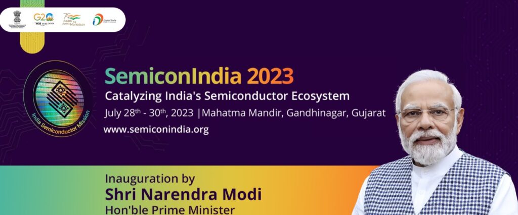 पंतप्रधान नरेंद्र मोदी यांच्या हस्ते 28 जुलै रोजी गांधीनगर येथील महात्मा मंदिर येथे सेमीकॉन इंडिया 2023 या परिषदेचे उद्घाटन होणार आहे. याप्रसंगी पंतप्रधान उपस्थितांना संबोधित देखील करतील. ‘भारताच्या सेमीकंडक्टर परिसंस्थेला प्रेरणा देताना’ ही या परिषदेची संकल्पना आहे. या क्षेत्रातील जागतिक पातळीवरील प्रमुख उद्योजक, शिक्षण संस्था आणि संशोधन संस्था यांना एकत्र आणण्याच्या उद्देशाने ही परिषद आयोजित केली आहे.