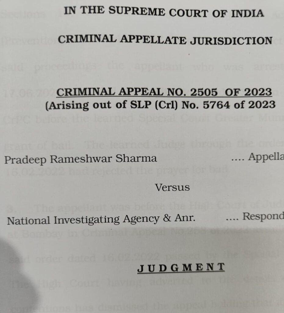 सन 2021मध्ये प्रख्यात उद्योगपती मुकेश अंबानी यांच्या अँटीलिया या आलिशान बंगल्याबाहेर जिलेटिन कांड्या ठेवल्याप्रकरणी व त्यातील एका आरोपीच्या मृत्यूसंदर्भात अटकेत असलेल्या चकमकफेम पोलीस अधिकारी प्रदीप शर्मा यांना सर्वोच्च न्यायालयाने जामीन मंजूर केला आहे. इतकेच नव्हे तर त्यांना बेकायदा कृत्य संबंधित कायदा लावणे हेच मुळात चुकीचे असल्याचे स्पष्ट करून एकप्रकारे राष्ट्रीय तपास यंत्रणेला मोठा धक्काच दिला आहे. दरम्यान राज्यात गाजलेल्या (की गाजवलेल्या) राजकीय नेत्यांच्या टेपप्रकरणी गुप्तवार्ता खात्याच्या संगणकामध्ये कुतीतरी अद्यात इसमाने ‘विषाणू’ सोडल्याचा सीबीआयने काढलेला निष्कर्ष मान्य करून उच्च न्यायालयाने वरिष्ठ आयपीएस अधिकारी रश्मी शुक्ला यांच्याविरुद्धची केस बंद करण्याची परवानगी सरकारला दिली.