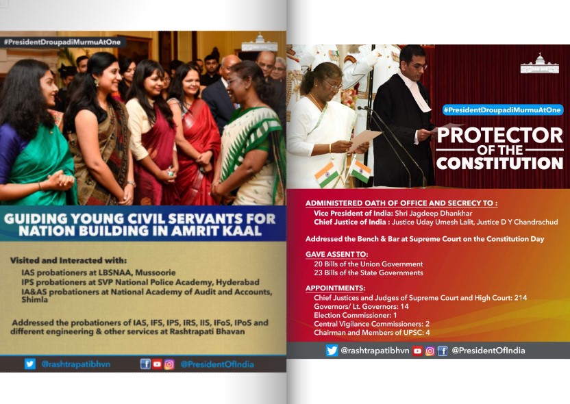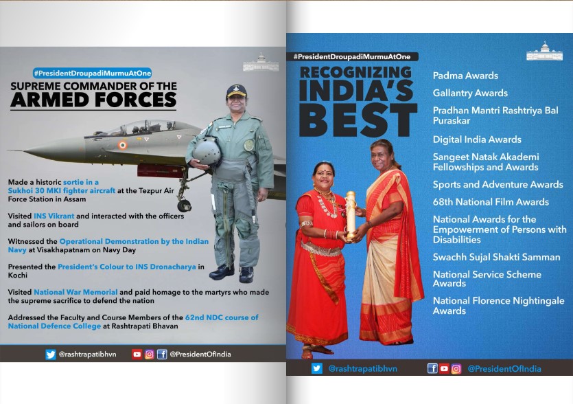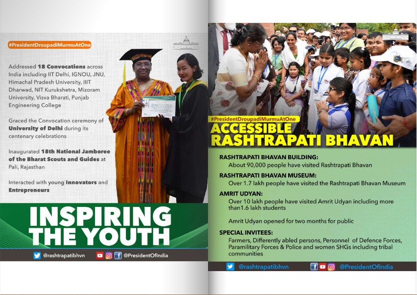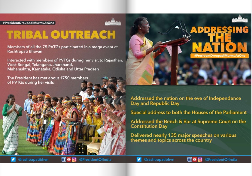 राष्ट्रपती पदाच्या कारकीर्दीचे एक वर्ष पूर्ण झाल्यानिमित्त आयोजित अनेक उपक्रमांमध्ये द्रौपदी मुर्मु सहभागी झाल्या होत्या. यात खालील उपक्रमांचा समावेश आहे-