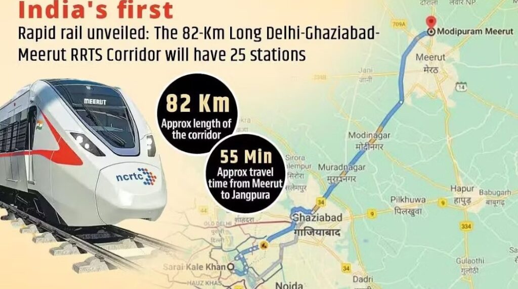 एनसीआर मध्ये एकूण आठ आरआरटीएस कॉरिडॉर विकसित केले जाणार आहेत, त्यापैकी दिल्ली–गाझियाबाद–मेरठ कॉरिडॉर, दिल्ली–गुरुग्राम–एसएनबी–अल्वर कॉरिडॉर आणि दिल्ली-पानिपत कॉरिडॉरसह तीन कॉरिडॉर पहिल्या टप्प्यात कार्यान्वित करण्याला प्राधान्य देण्यात आले आहे. दिल्ली-गाझियाबाद-मेरठ आरआरटीएस 30,000 कोटी रुपयांहून अधिक खर्च करून विकसित केला जात आहे आणि गाझियाबाद, मुरादनगर आणि मोदीनगर या शहरी भागातून जात एका तासापेक्षा कमी वेळेत दिल्लीला मेरठशी जोडेल.