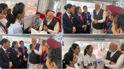 पंतप्रधान नरेंद्र मोदी यांनी आज नमो भारत या प्रादेशिक वेगवान रेल्वे गाडीतून स्वतः प्रवासदेखील केला.