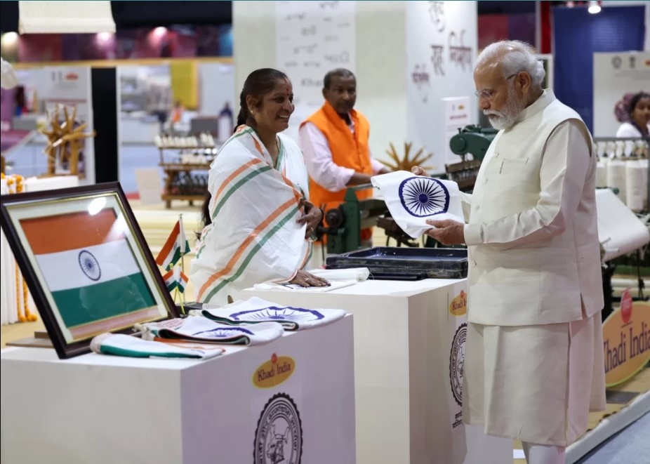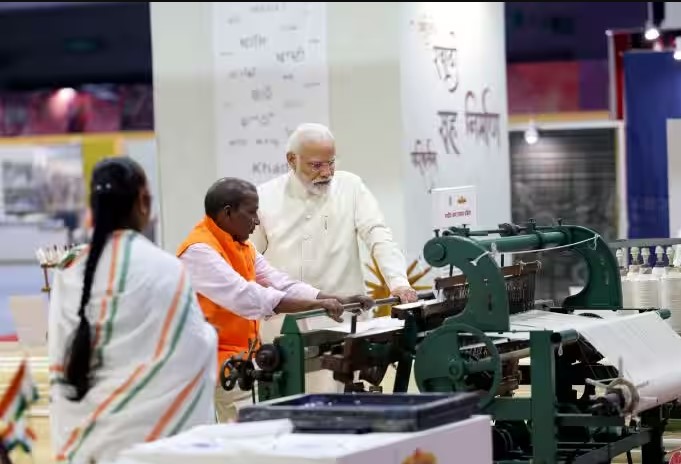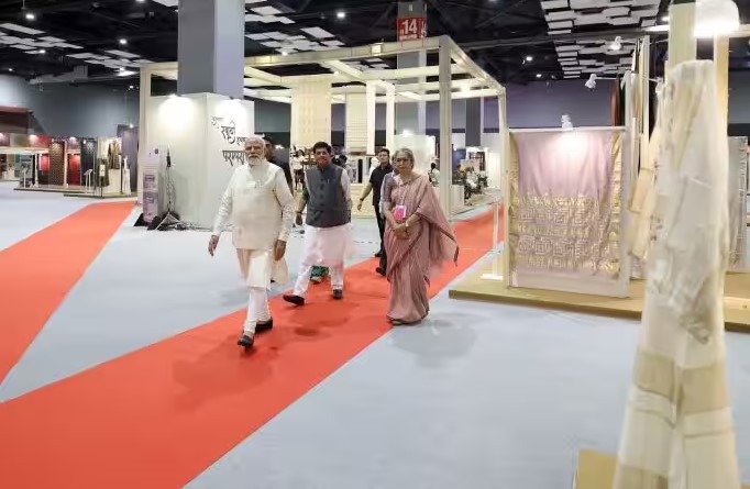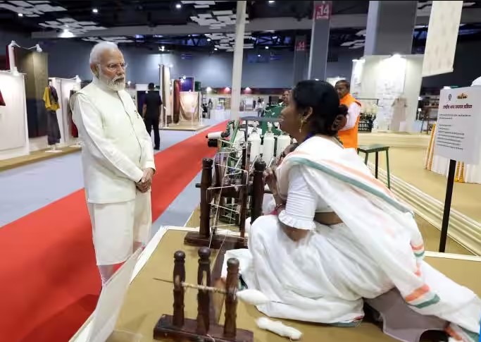 पंतप्रधान नरेंद्र मोदी यांनी नवी दिल्लीतल्या प्रगती मैदानात ‘भारत मंडपम’मध्ये राष्ट्रीय हातमाग दिन सोहळ्यामध्ये आपले विचार व्यक्त केले आणि नॅशनल इन्स्टिट्युट ऑफ फॅशन टेक्नॉलॉजीने (एनआयएफटी) विकसित केलेल्या ‘भारतीय वस्त्र एवं शिल्प कोष’- या वस्त्र आणि कलाकुसरीच्या वस्तू भांडाराच्या ई-पोर्टलचे नुकतेच उद्घाटन केले. यावेळी आयोजित करण्यात आलेल्या प्रदर्शनालादेखील पंतप्रधानांनी भेट दिली आणि तिथल्या विणकरांशी संवाद साधला. यावेळी उपस्थितांसमोर आपले विचार व्यक्त करताना पंतप्रधानांनी ‘भारत मंडपम’चा उद्घाटन सोहळा होण्यापूर्वी प्रदर्शनातील सहभागी प्रगती मैदानात कशा प्रकारे एका तंबूमध्ये आपली उत्पादने प्रदर्शित करायचे त्याची आठवण करून दिली.