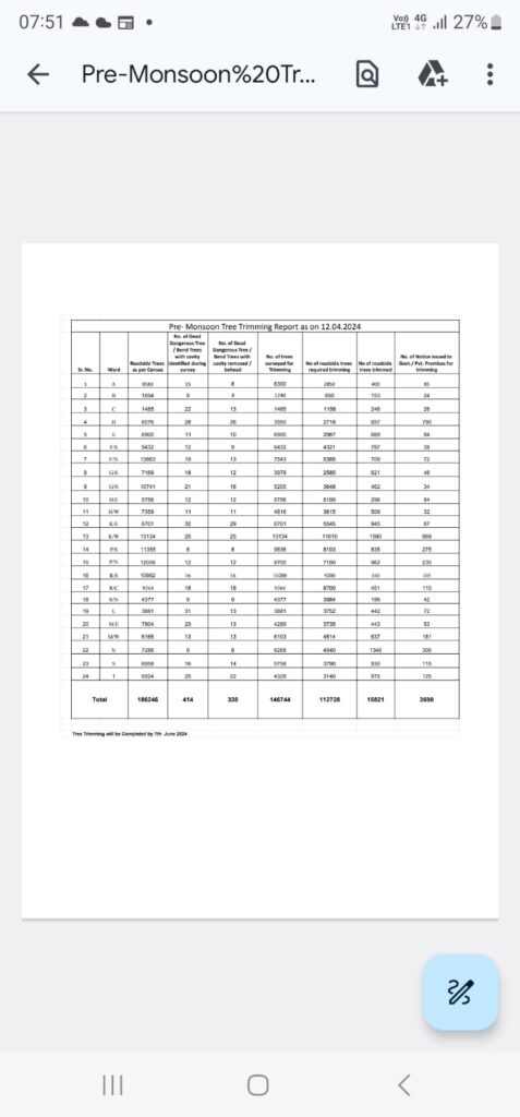 बृहन्मुंबई महानगरपालिकेच्या उद्यान विभागातर्फे मान्सूनपूर्व कामांतर्गत मृत/धोकादायक झाडे व फांद्या यांची छाटणी करण्याचे काम हाती घेण्यात आले आहे. विभागवार नेमलेल्या ठेकेदारामार्फत हे काम करण्यात येत आहे. तथापि बऱ्याच रस्त्यांवर पार्क केलेल्या गाड्यांमुळे ही कामे करताना अडथळा निर्माण होतो. अनेकदा अनावश्यक विवादही उत्पन्न होतो. परिणामी या धोकादायक अथवा मृत झाडांची छाटणी करता येत नाही व ही झाडे अथवा फांद्या पावसात वादळात पडून नागरिकांची जीवित/वित्त हानी संभवते.