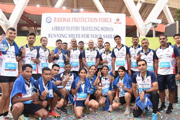 महिलांना रेल्वेतून सुरक्षित आणि निर्विघ्न प्रवास करण्याच्या उद्देशाला प्रोत्साहन देण्यासाठी रेल्वे पोलीस दलाच्या (RPF) 25 सदस्यीय संघाने काल दिल्ली हाफ मॅरेथॉन 2023 मध्ये भाग घेतला. भारतीय रेल्वे मार्गावर महिलांची सुरक्षा आणि सुरक्षितता वाढवण्याच्या उद्देशाने रेल्वे पोलिस दलाच्या विविध उपक्रमांबद्दल जनजागृती करणे हा या दौडी मागचा मुख्य उद्देश होता. यात विशेषत्वाने “मेरी सहेली” उपक्रमावर लक्ष केंद्रित करण्यात आले होते.