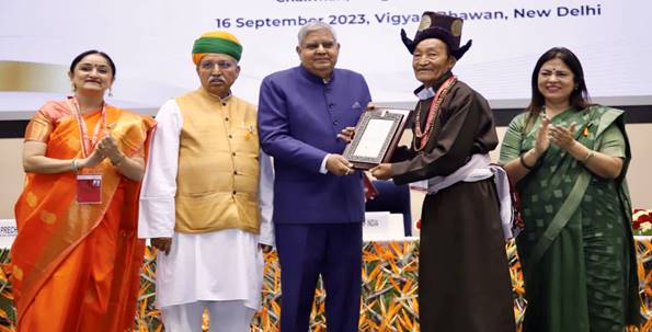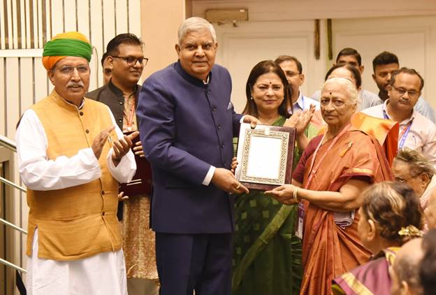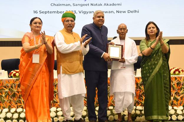 कायदा आणि न्याय मंत्री (स्वतंत्र प्रभार) आणि सांस्कृतिक आणि संसदीय कामकाज राज्यमंत्री अर्जुन राम मेघवाल आणि सांस्कृतिक आणि परराष्ट्र व्यवहार राज्यमंत्री मीनाक्षी लेखी, संगीत नाटक अकादमीच्या अध्यक्ष डॉ.संध्या पुरेचा यांच्या उपस्थितीत आज नवी दिल्लीत विज्ञान भवन येथे एका विशेष समारंभात उपराष्ट्रपतींच्या हस्ते संगीत नाटक अकादमी अमृत पुरस्कार प्रदान करण्यात आले.