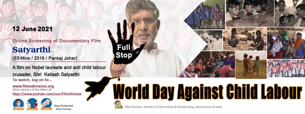 जागतिक बालमजुरीविरोधी दिनानिमित्त फिल्म्स प्रभाग, उद्या दिनांक 12 जून 2021 रोजी नोबेल पारितोषिक विजेते आणि बालमजुरीविरुध्दच्या लढ्यात मोठे योगदान देणारे कैलाश सत्यार्थी यांच्या कार्याची महती अधोरेखित करणारा माहितीपट प्रसारित करणार आहे. हा चित्रपट फिल्म प्रभागाच्या संकेतस्थळावरून तसेच यू-ट्यूब वाहिनीवरून प्रदर्शित होईल.