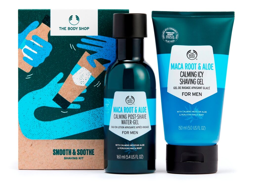 द बॉडी शॉपच्या स्मूथ अॅण्ड सूथ शेव्हिंग किटमध्ये गुळगुळीत व स्वच्छ शेव्हसाठी माका रूट आणि अॅलोव्हेराच्या चांगल्या गुणांनी युक्त उत्पादने आहेत. स्टबल-स्मूथिंग ट्रीट मेक्सिकोच्या कम्युनिटी फेअर ट्रेड ऑरगॅनिक कोरफडीच्या सहाय्याने बनवले जाते. या किटमध्ये माका रूट अॅण्ड अॅलो शेव्हिंग जेल, माका रूट अॅण्ड अॅलो पोस्ट शेव्ह जेल समाविष्ट आहेत आणि याची किंमत २८९५ रुपये आहे.