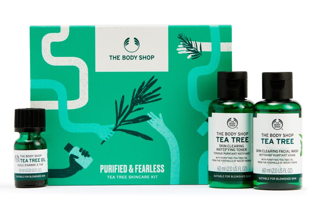 द बॉडी शॉपचा क्लीन अॅण्ड ग्लीम टी ट्री स्किनकेअर गिफ्ट सेट त्वचेवरील डाग दूर करेल. तुम्हाला स्वच्छ, तेजस्वी आणि शुद्ध त्वचा देईल. या गिफ्ट सेटमध्ये टी ट्री क्लिअरिंग मॅटिफाईंग टोनर, टी ट्री ऑईल आणि टी ट्री स्किन क्लिअरिंग फेस वॉश आहे. याची किंमत १,४९५ रुपये आहे.