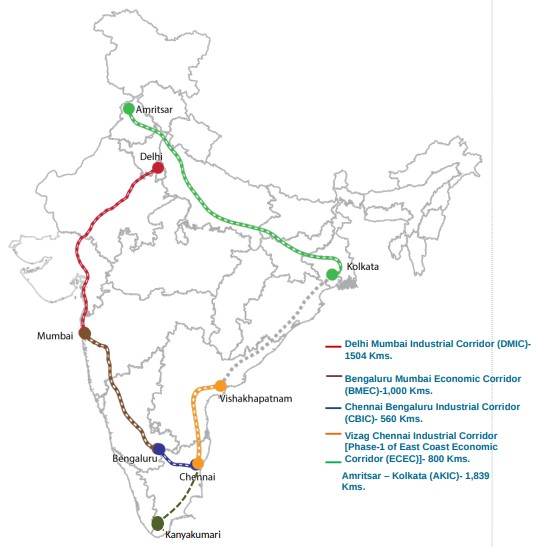 भारत सरकार खालील 11 औद्योगिक मार्गिकाटप्प्याटप्प्याने विकसित करत आहे :-