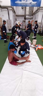 परिस्थितीची निकड ओळखून आयसीजीएस वीरा वेगाने पुढे निघाले आणि वाचलेल्यांना मदत देण्यासाठी काही तासांतच त्या ठिकाणी पोहोचले. सर्व नऊ जणांना तटरक्षक दलाच्या जहाजात हलवण्यात आले तिथे वैद्यकीय पथकाने त्यांच्यावर तातडीने प्रथमोपचार केले. दरम्यान, तटरक्षक दलाच्या जिल्हा मुख्यालय क्रमांक 6ने जेडी फिशरीज विशाखापट्टणम यांच्या समन्वयाने आयएफबीच्या गंभीर जखमी कर्मचाऱ्यांना बाहेर काढण्यासाठी वैद्यकीय पथकांसह रुग्णवाहिकांची तातडीने व्यवस्था केली. सर्व जखमी मच्छिमारांना पुढील उपचारांसाठी विशाखापट्टणम येथील किंग जॉर्ज रुग्णालयात हलवण्यात आले.