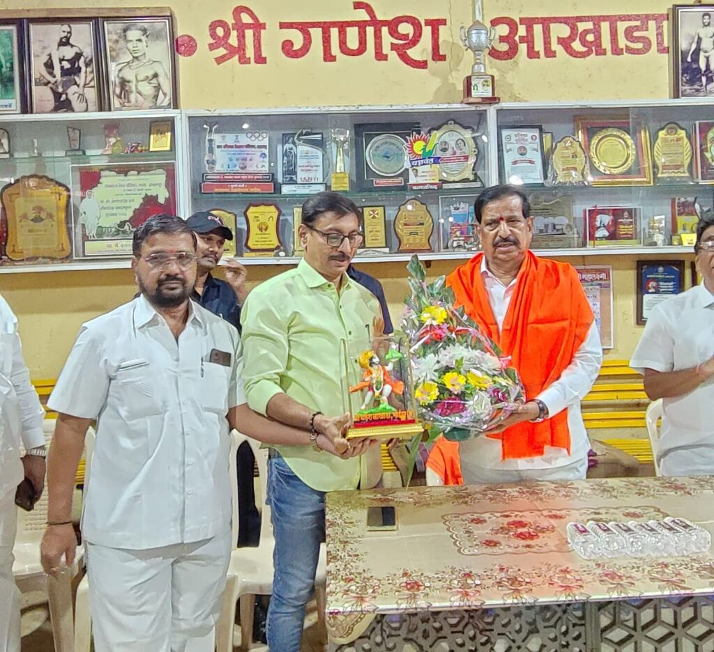 कुस्तीगीर संघाचे अध्यक्ष मिलिंद लिमये यांच्या हस्ते शाल, पुष्पगुच्छ व बजरंगबलीची मूर्ती प्रदान करून गणेश नाईक यांचा खास सत्कार करण्यात आला. कार्यक्रमाचे प्रास्ताविक मिलिंद लिमये यांनी केले. आखाड्याला २५ वर्ष पूर्ण होत आहेत त्यानिमित्ताने नाईक यांच्या अध्यक्षतेखाली भव्य कुस्ती मैदान भरवण्याची मागणी त्यांनी यावेळी केली.